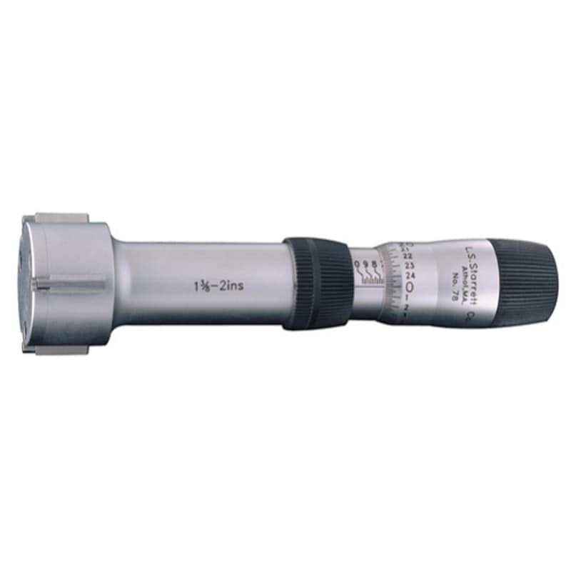 Starrett 78MXTZ-3 Bore Gage Internal Micrometer; 2.5 mm to 3 mm Range. The 78XT Bore Gages feature extended travel, reducing the need to exchange anvils. The ground contact points seat the internal micrometer faster and more accurately than the spherical contacts found in other gages. Approximate measuring depth is 9 mm. These rugged and accurate internal micrometers are available individually with a setting ring with a 2.5 mm diameter.