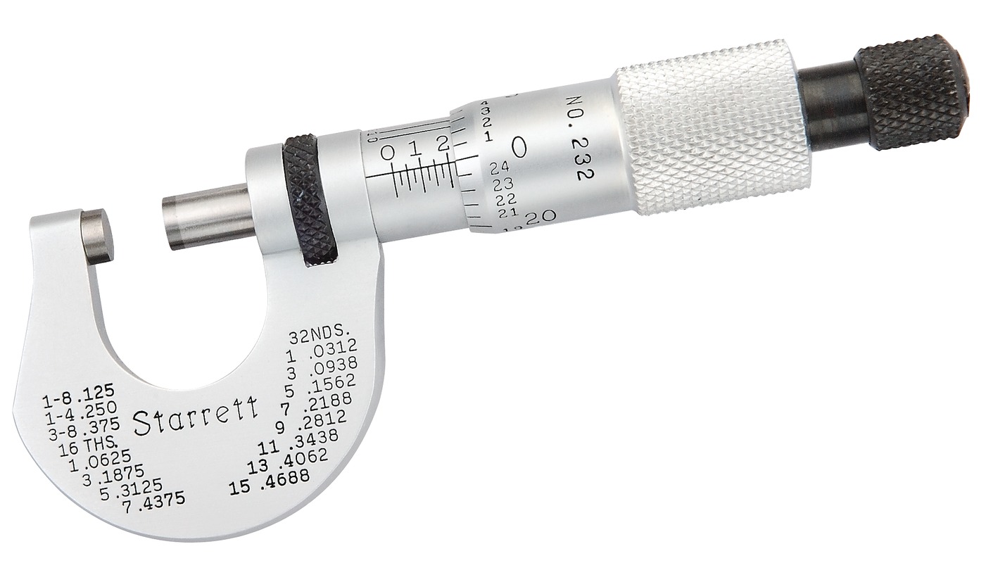 Outside Micrometer, Ratchet Thimble, Carbide Anvil-Spindle, 0-1/2″ Range, .0001″