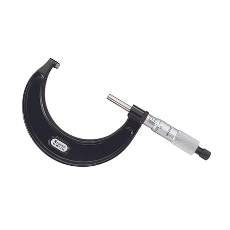 The Starrett 436.1 series outside micrometer has a vernier scale in inch units for taking precise outside diameter (OD) measurements, a tapered frame for measuring narrow slots and tight places, and a ratchet-stop mechanism that helps provide uniform pressure for precise, repeatable measurements. The micrometer’s steel frame has a baked enamel finish for protection and durability. The vernier scale on the thimble and sleeve is graduated to 0.001” or 0.0001” depending on the model, with a satin chrome rust- and glare-resistant finish. The spindle and anvil have flat, micro-lapped measuring faces for accuracy and are carbide-tipped for wear resistance. A knurled ring-type lock nut helps provide secure locking of the measurement position.