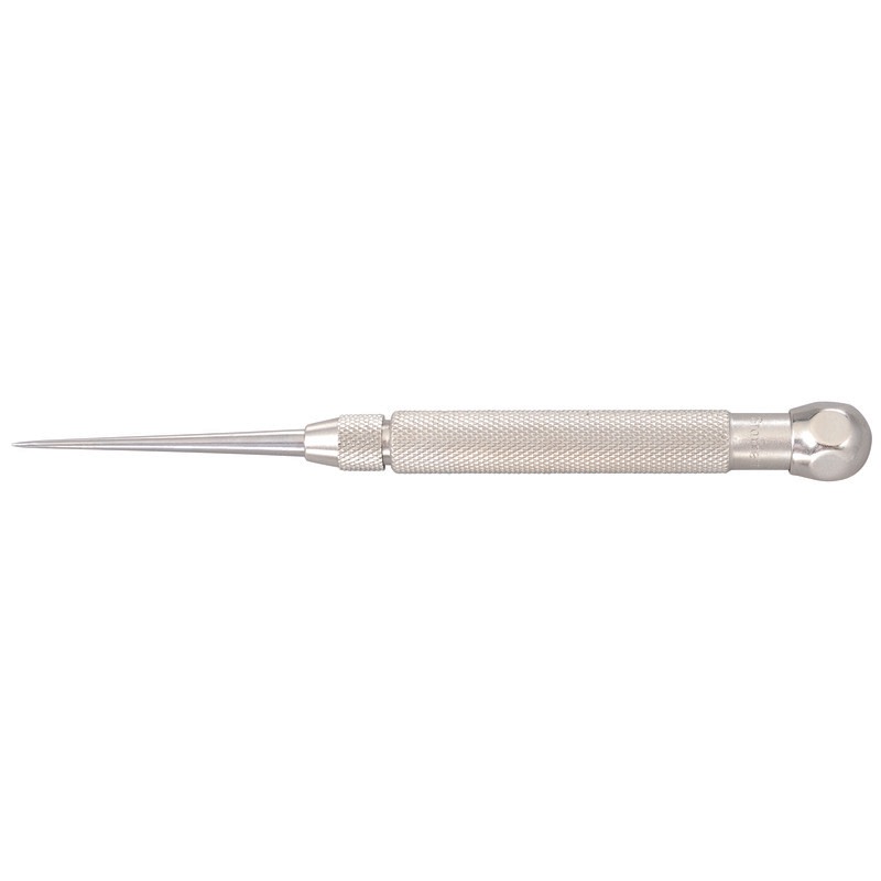 The scriber point is steel, properly hardened and finely tapered so that the location of the point is not obscured.