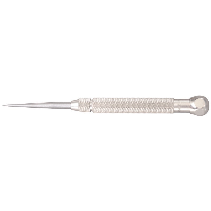The scriber is held firmly in the handle by a knurled chuck and when not in use can be reversed, telescoped into the handle, and locked by the chuck.