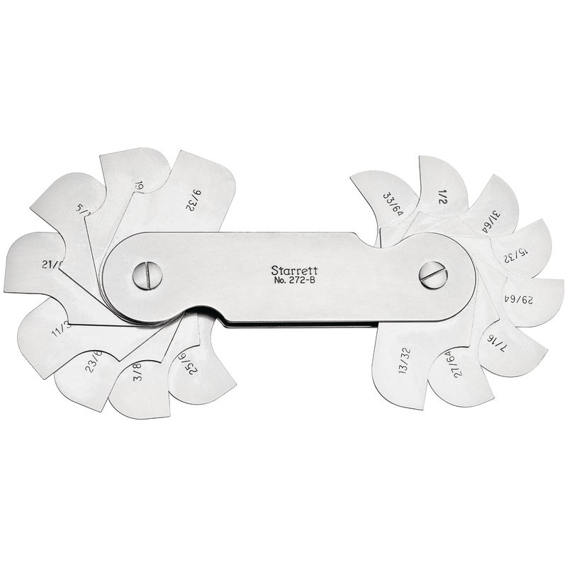 Starrett Radius Gage 16 Leaves 9/32-33/64in Range by 64ths 272B Fillet or Radius Gage, 9/32-33/64″ Range (Concave and Convex), 64th Increments, 16 Leaves, Inch Reading