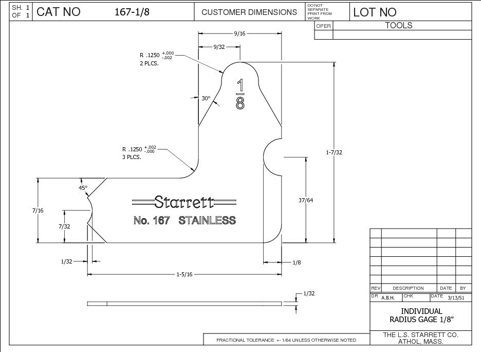 Steel Radius Gage, 1/8″ Range, Inch Reading