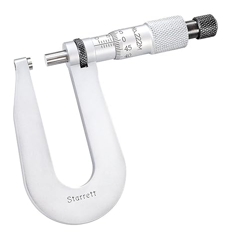 Starrett Sheet Metal Micrometer 0-13mm Flat Anvil 50mm Throat 222MRL-13 Sheet Metal Micrometer, Ratchet Stop, Lock Nut, 0-13mm Range, 0.01mm Graduation, Flat Anvil