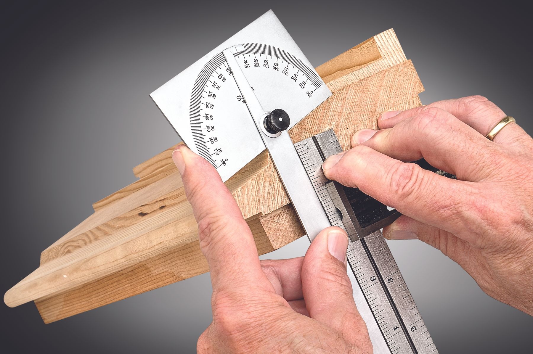 Useful and accurate tool for setting bevels, transferring angles, squaring tasks, checking cutter clearances, and many other applications