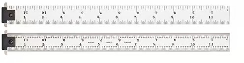 Spring Tempered Steel Rule With Inch Graduations, Adjustable Double Hook, 4R Style Graduations, 12″ Length, 1″ Width, 3/64″ Thickness