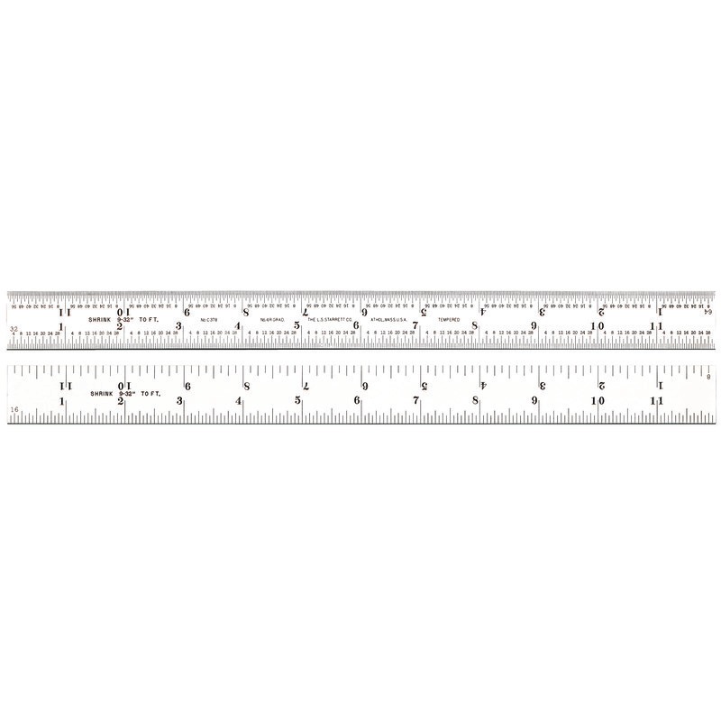 Starrett Steel Rule 12in 9/32in Shrink per foot 4R Grad C378-12 Steel Rule with Shrink Graduations, Graduations at 8ths, 16ths, Quick-Reading 32nds, 64ths