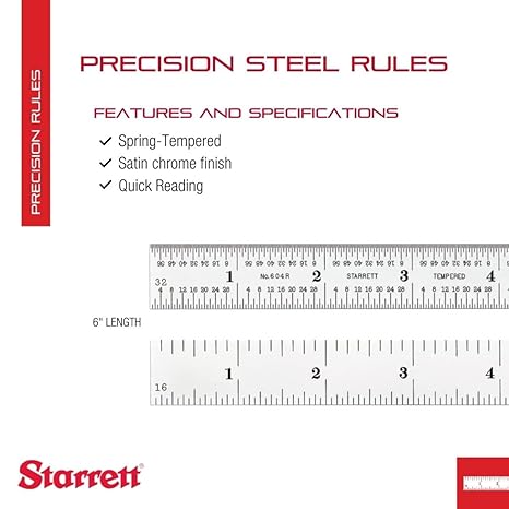 Home » Shop » MEASUREMENT » Precision Measuring Tools > Precision Hand Tools » Precision Measuring Tools > Precision Hand Tools > Precision Rules, Straight Edges and Parallels » Starrett Steel Rule 12in No. 1 Grad C601-12 Spring Tempered Steel Rule with Inch Graduations, 12″ Length, 1″ Width, 3/64″ Thickness