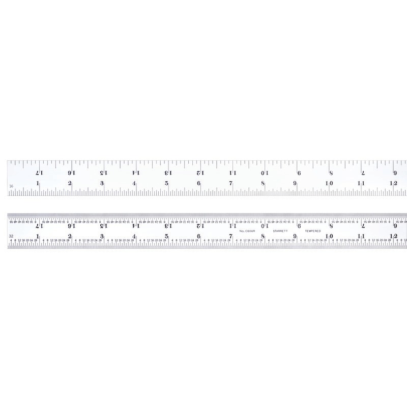 Spring Tempered Steel Rule with Inch Graduations, 4R Style Graduations, 18″ Length, 1-1/8″ Width, 3/64″ Thickness