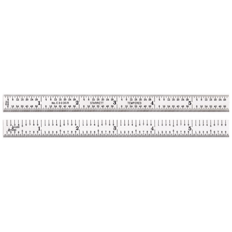 Semi-Flexible Steel Rule with Inch Graduations, 3R Style Graduations, 6″ Length, 3/4″ Width, 1/50″ Thickness