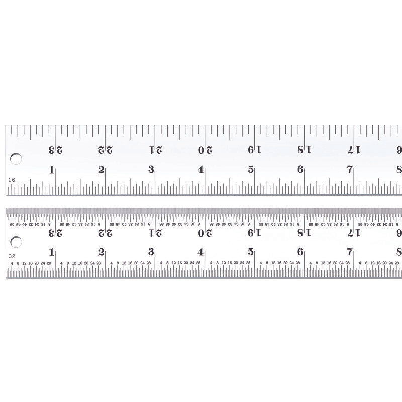 Heavy Spring Tempered Steel Rule with Inch Graduations, 4R Style Graduations, 24″ Length, 1-1/4″ Width, 1/10″ Thickness