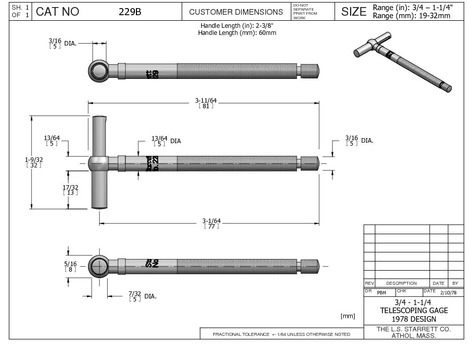 Telescoping Gage, 3/4 – 1-1/4″/19-32mm Range, 2-3/8″/60mm Handle Length