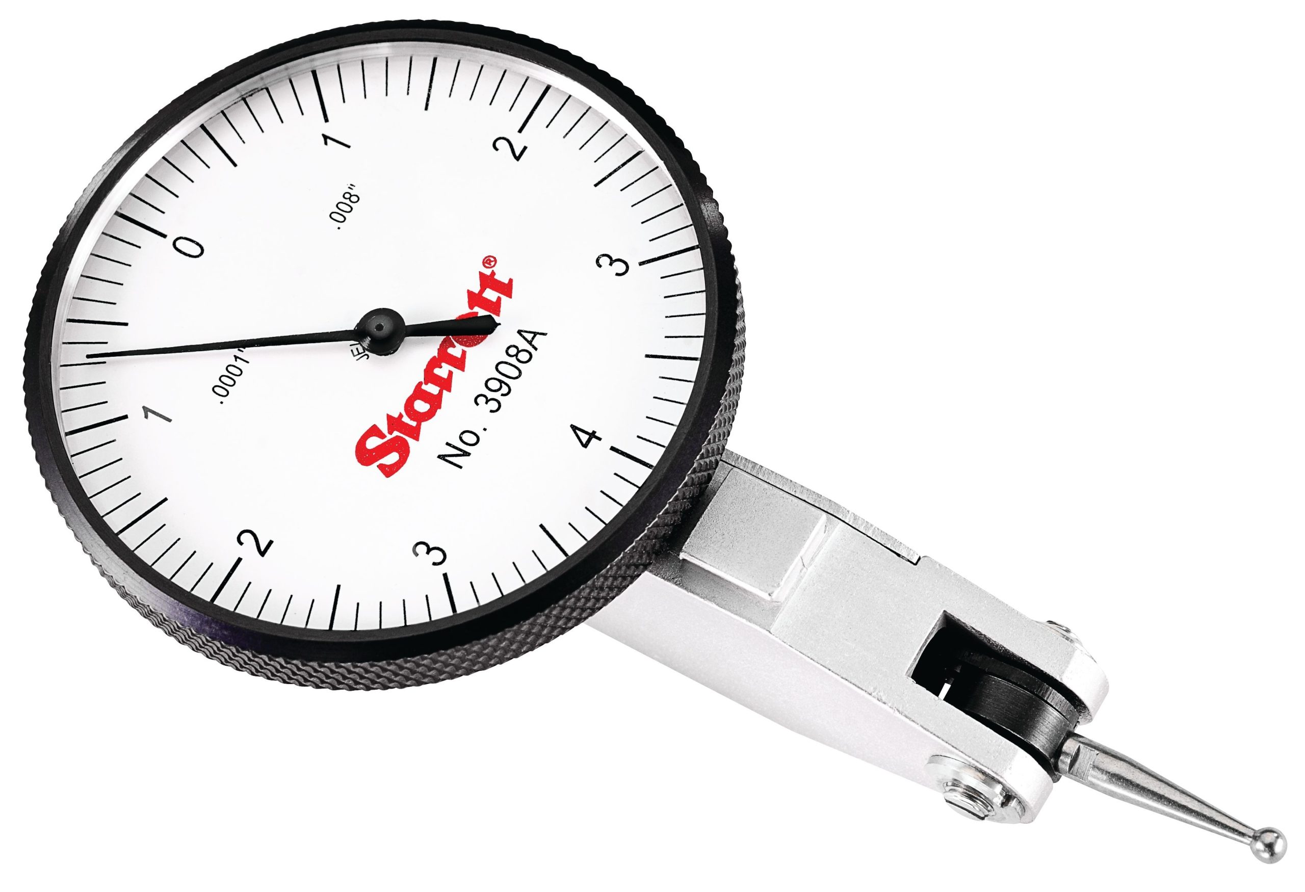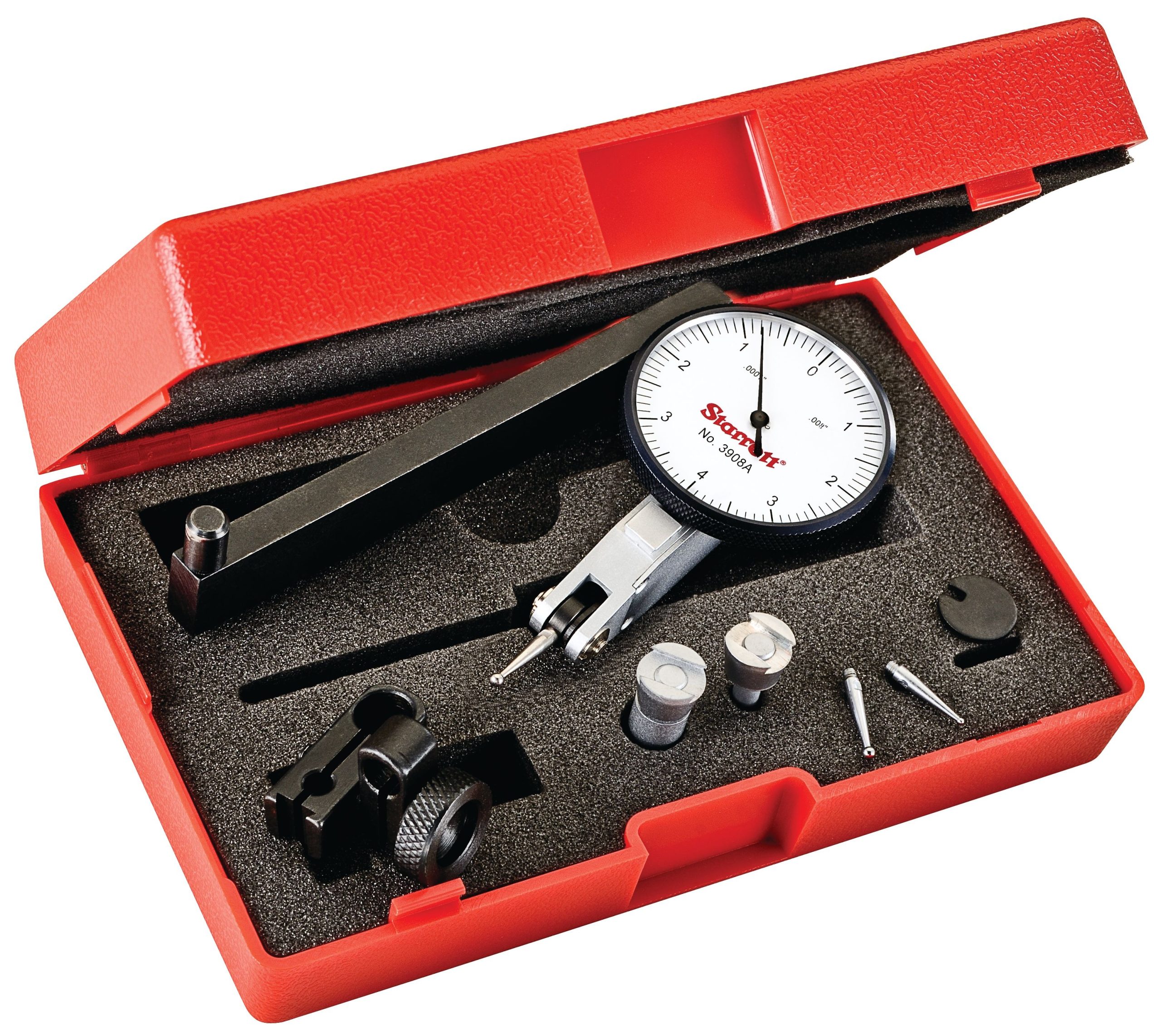 Dial Test Indicator with Dovetail, .008″ Range, 0-4-0 1-9/16″ Dial Face, .0001″ Graduations, Two Dovetail Clamps, Case