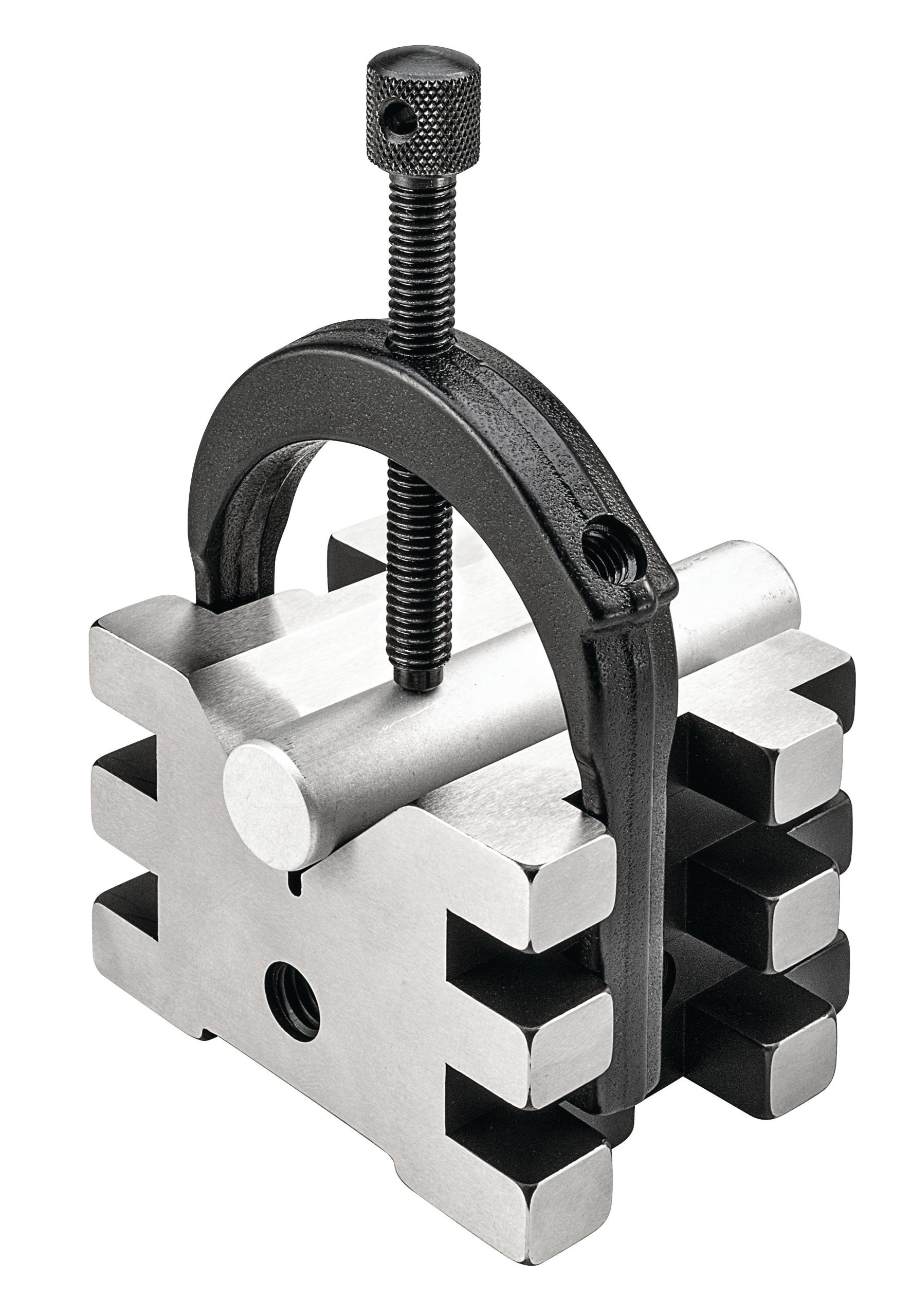 V-Block and Clamp, 2″ (50mm) Dia. Round; 1-7/16″ (36mm) Square (1-9/16″ (40mm) with Screw at Top) Capacity