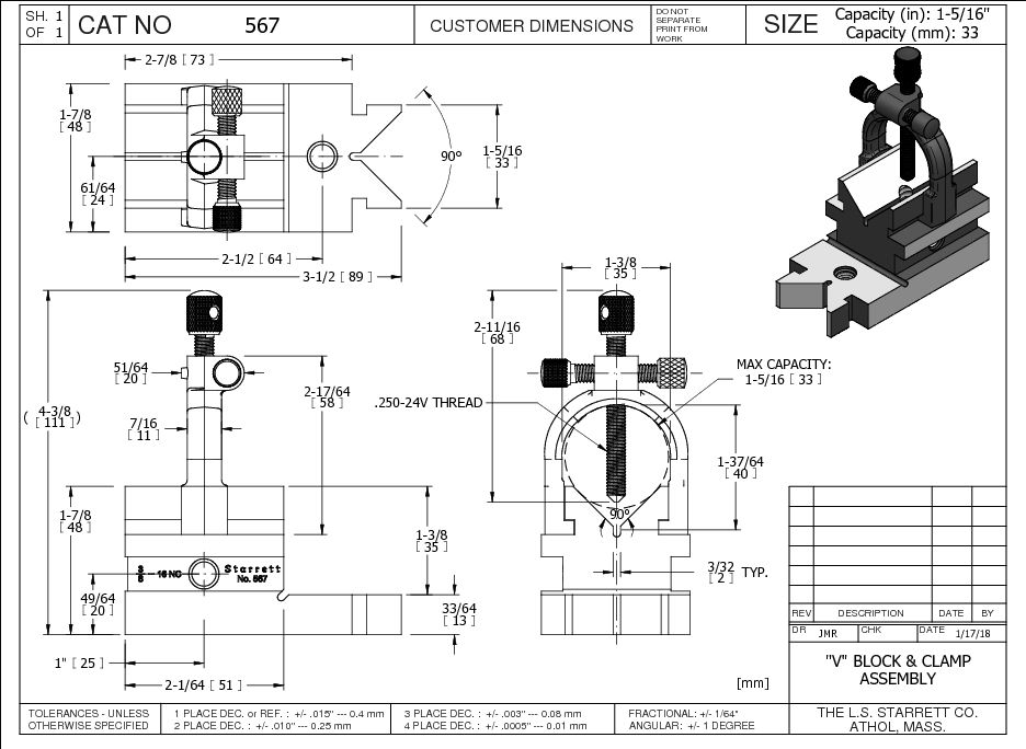 V-Block and Clamp, 1-5/16″ (33mm) Capacity