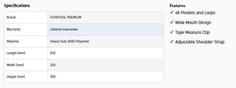 Home » Shop » HAND TOOLS » SOFT & PLASTIC STORAGE » STP STP7101 TOOL WIDE MOUTH BAG