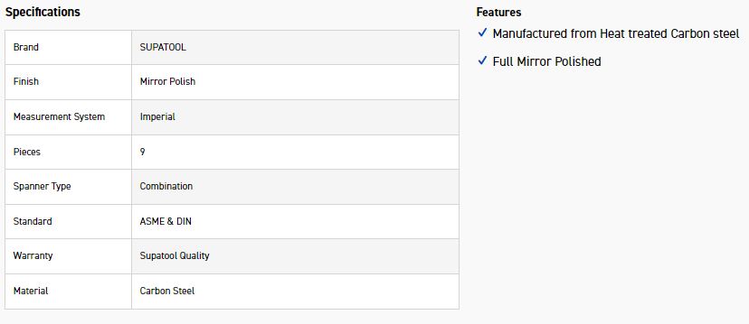 Home » Shop » HAND TOOLS » SPANNERS & SETS » SUPATOOL S3008 COMB SPANNER SET 9PC AF