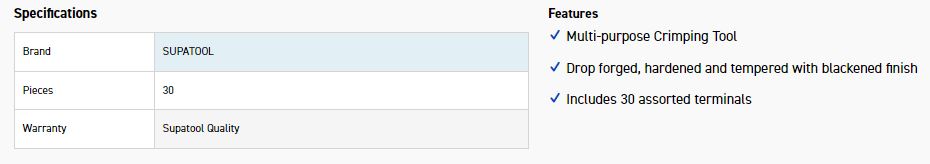 Home » Shop » HAND TOOLS » PLIERS & WRENCHES » SUPATOOL S4020 CRIMPING TOOLKIT 30PCE