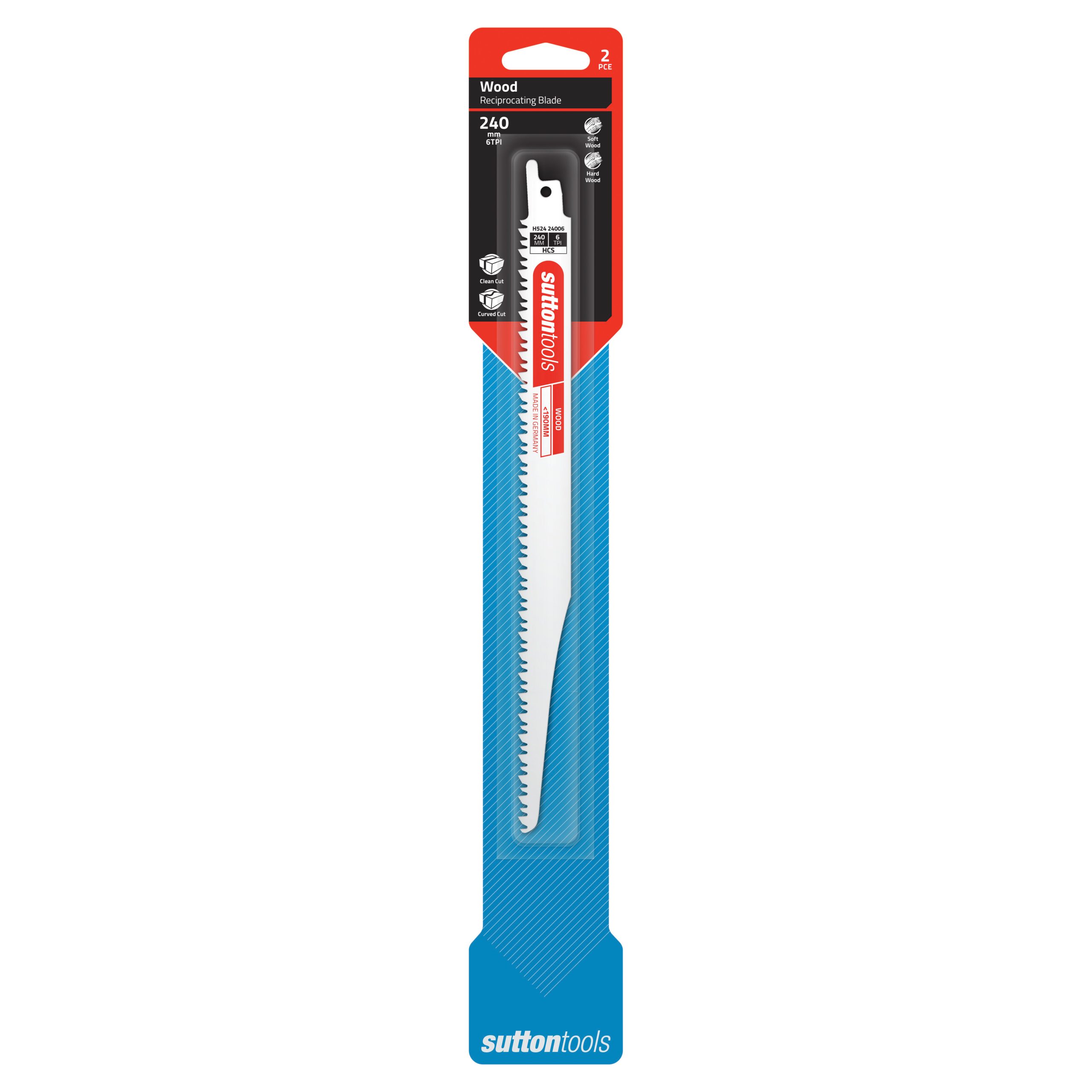 Recip Blade H524 Wood Curved Cut 240x19x1.27mm 6 TPI HCS 2PK