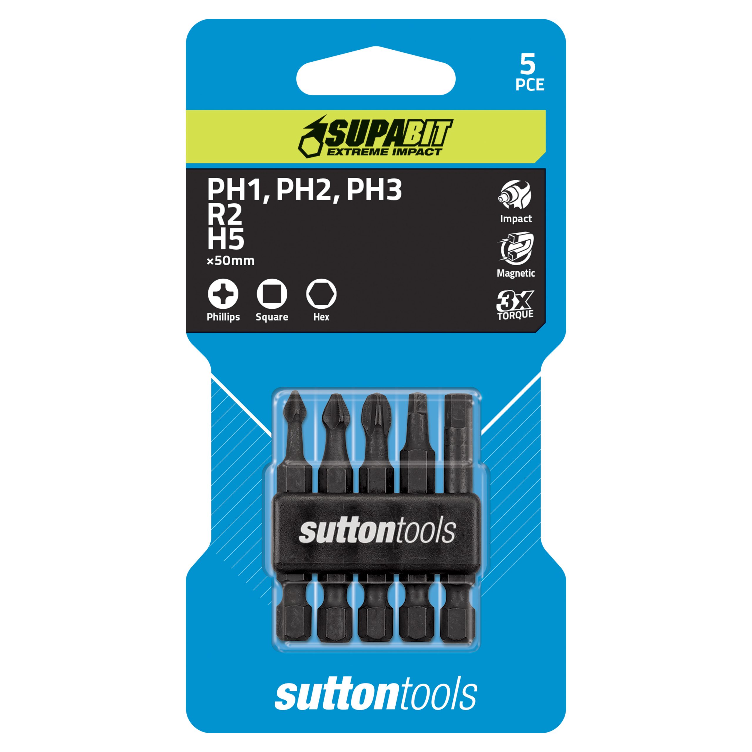 SCREWDRIVER BIT SET S138 ASSORTED 50MM POWER 5PC SUPABIT
