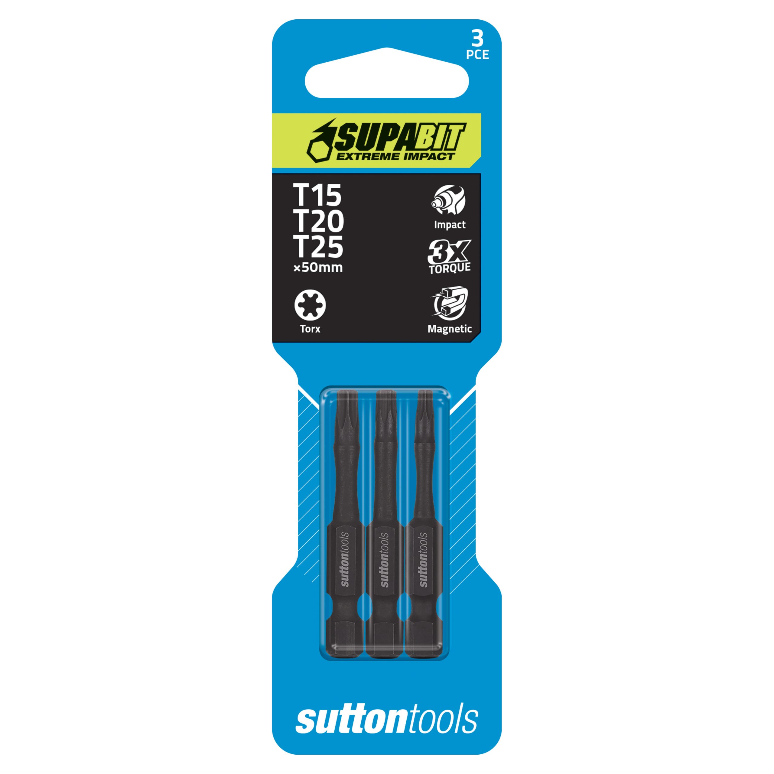 SCREWDRIVER BIT SET S153 TORX T15-T25 50MM POWER 3PC SUPABIT