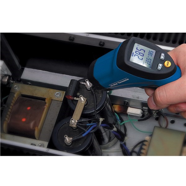 Features a unique dual laser beam system which accurately pinpoints the targeted area, ensuring optimum distance from the object for precise temperature measurement