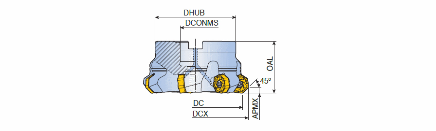 45° Face mills with carbide shim and double-sided 14 cutting edges inserts of XN 06 for roughing and finishing of difficult-to-cut materials
