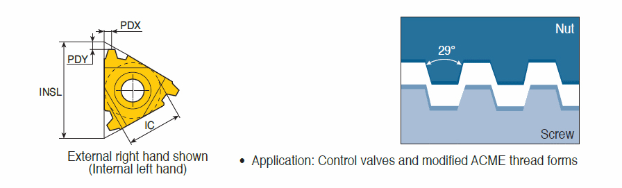 External STUB ACME threading inserts with shallow ACME profile for control valves