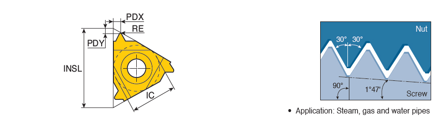Internal NPTF (National Pipe Threads) full profile threading inserts for steam, gas and water pipes