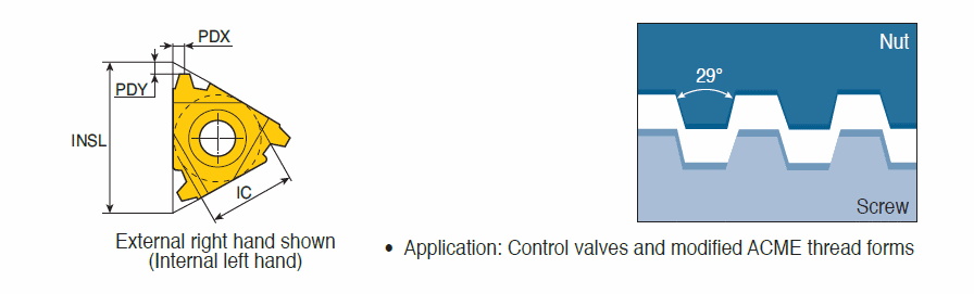Internal STUB ACME threading inserts with shallow ACME profile for control valves