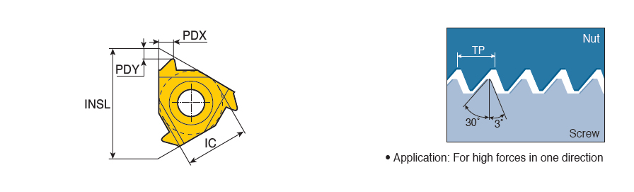 Internal sagengenwinde threading inserts for high force in one direction