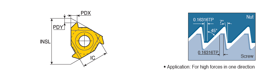 Internal American Buttress threading inserts for high force transmission in one direction