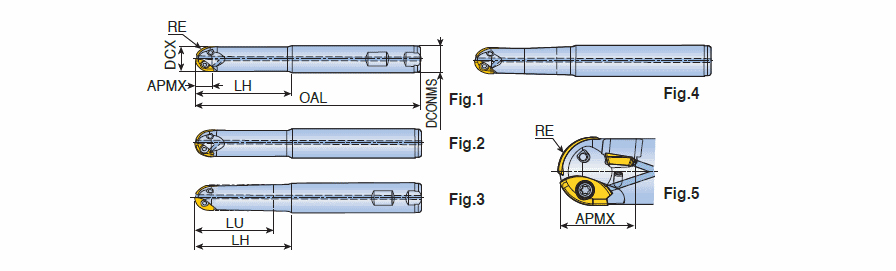 Ball nose end mills for rough or semi-finish profiling with one insert 2FB of both internal & external pockets in diameters of 16/20/25/30/32 mm
