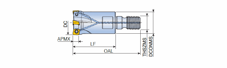 90° Modular end mills with T-FLEXTEC adaptation & high positive helical cutting edges of 2PKT inserts