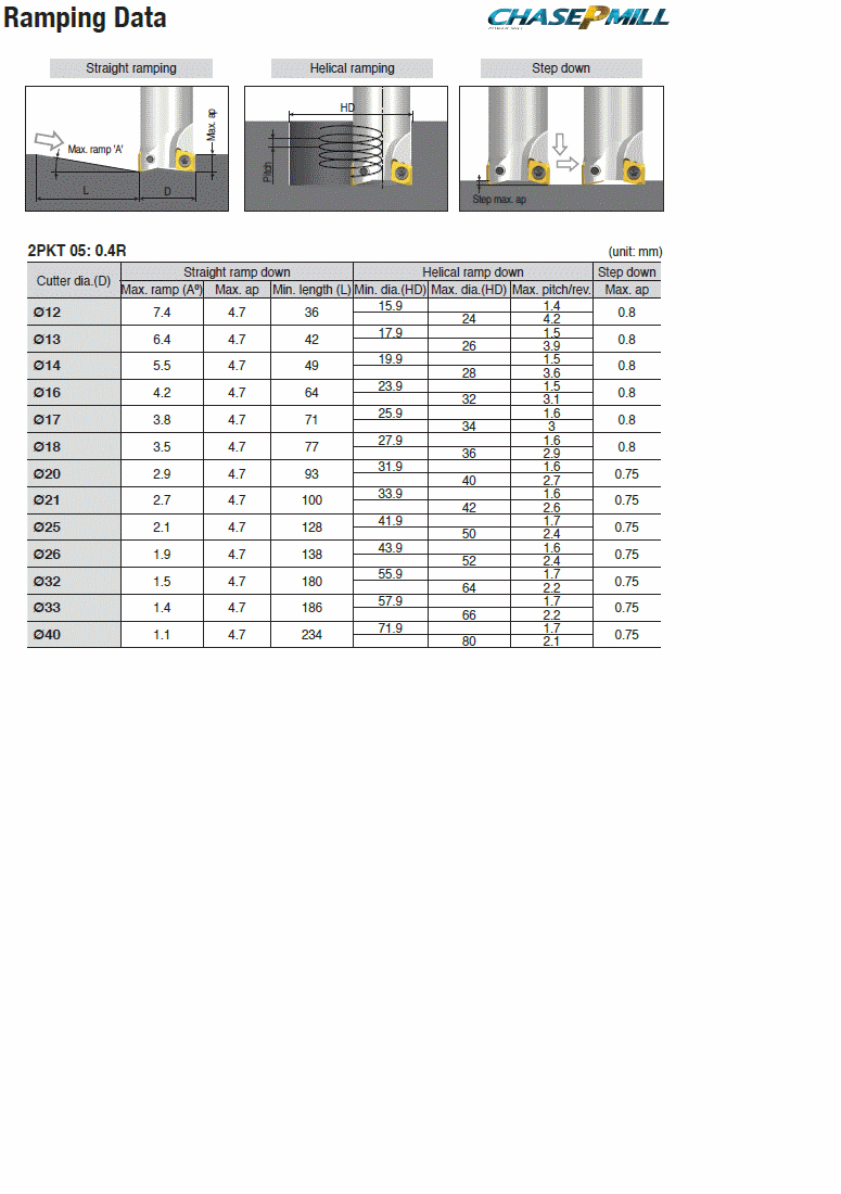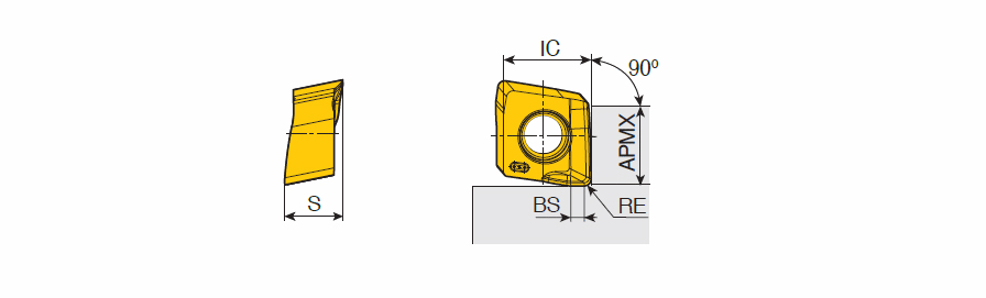 Positive double-sided inserts with two helical cutting edges & strong double-dovetail design for stable machining of 90° shouldering