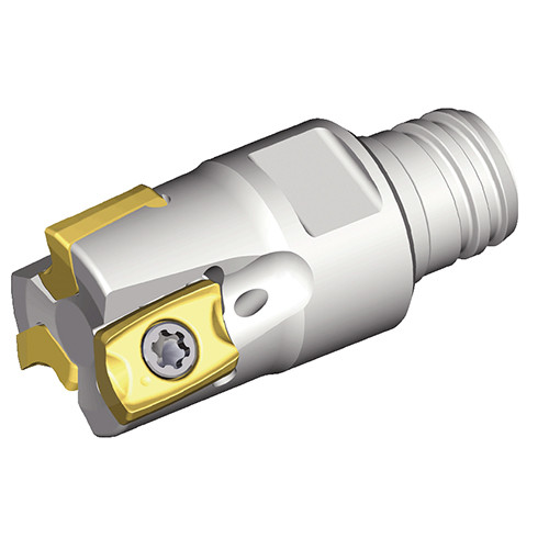 End mills with MAXIRUSH modular adaptation & unique high positive & rigid V shape inserts of two cutting edges for shouldering and high feed milling