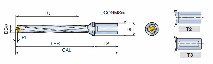 Head changeable 3 flute drills with coolant holes for high productivity