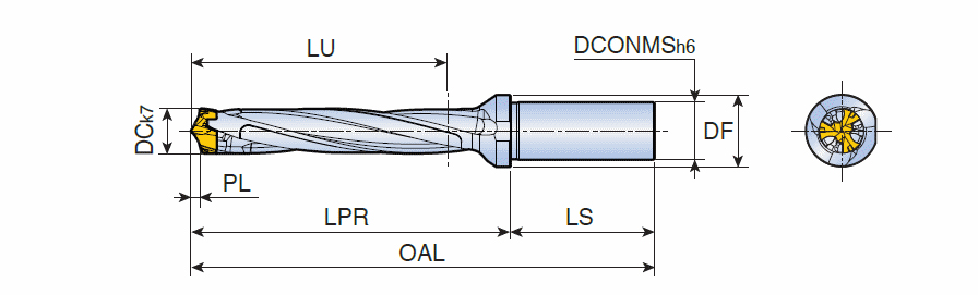 Head changeable 3 flute drills with cylindrical shank (5xD)and coolant holes