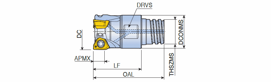 90° Modular end mills with MAXIRUSH adaptation & high positive three helical cutting edges of 3PKT 04 inserts