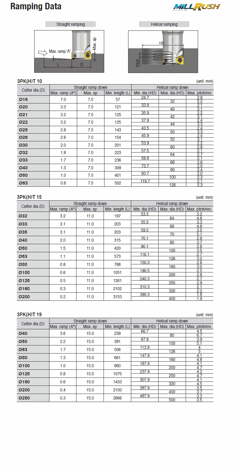 90° Modular end mills with T-FLEXTEC adaptation & high positive three helical cutting edges of 3PK(H)T 15 inserts
