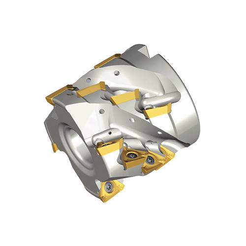 Extended flute shell mills with 3PKT 19 inserts of positive 3 helical cutting edges