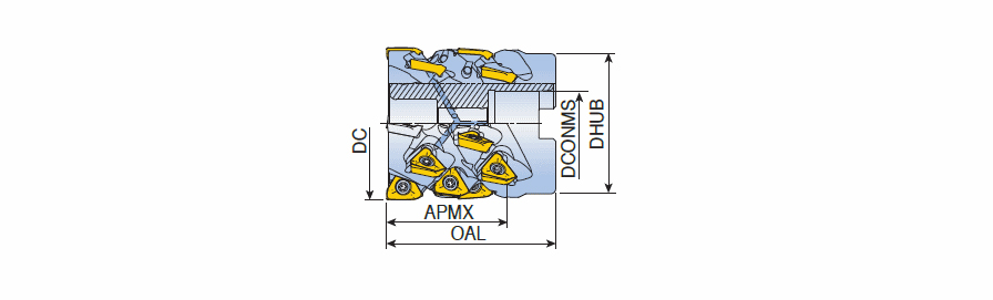 Extended flute shell mills with 3PKT 10 inserts of positive 3 helical cutting edges