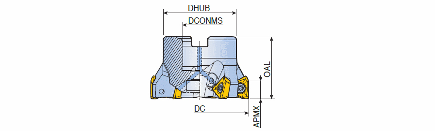 90° Face mills with high positive three helical cutting edges inserts of 3PK(H)T 15 & inch bores