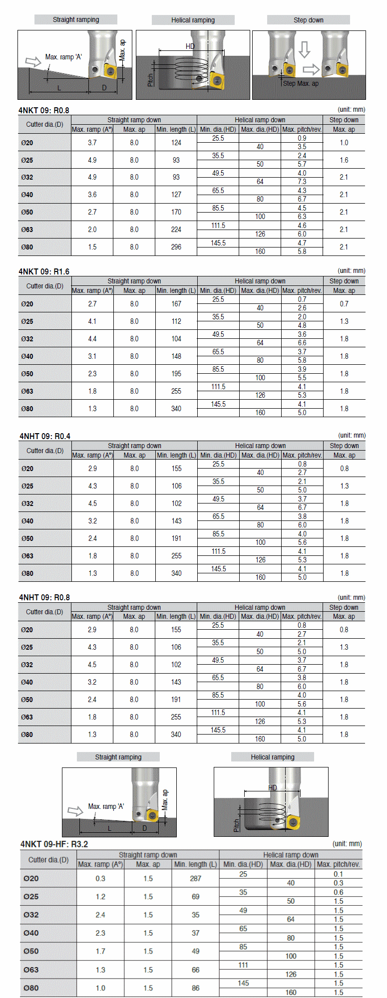 90° Modular end mills with T-FLEXTEC adaptation & unique four high positive helical cutting edges of double-sided 4NK(H)T 09 inserts & high ramping capability