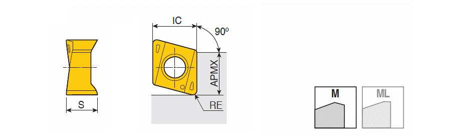 Double-sided inserts with four high positive helical cutting edges & high ramping capacity for 90° shoulders of general machining