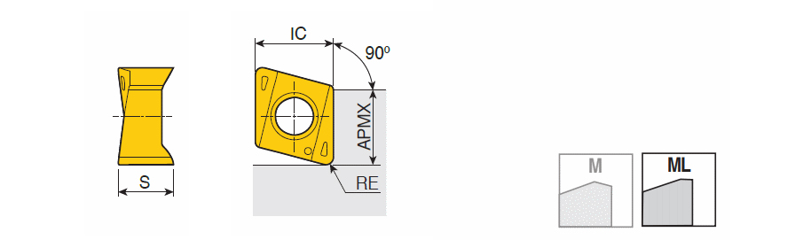 Application:, Facing, Helical Interpolation, Inserts, Rampdown, Shouldering, Slotting, Step down machining, Grade: TT9080