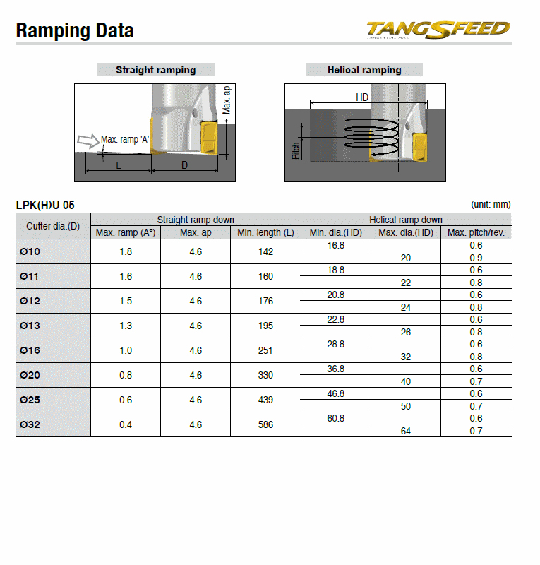 90° End mills with strong tangential type 4 cutting edge LPK(H)U 05 inserts