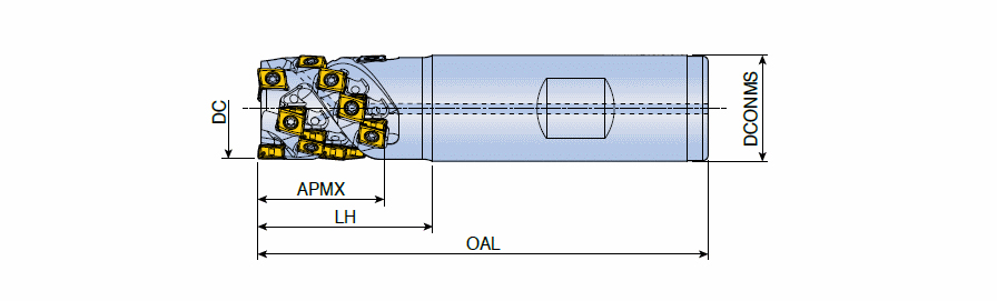 Extended flute end mills with strong tangential type 4 cutting edge LPK(H)U inserts