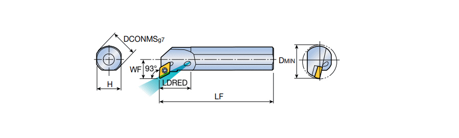 Screw type RHINOMTURN boring bars for mini size DN.X 0803 inserts and internal coolant hole and 93° approach angle