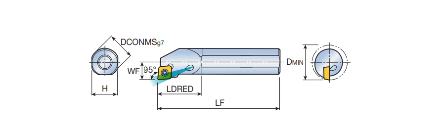 Screw type boring bars for positive 80° Rhombic inserts of 11° clearance angle with coolant and 95° approach angle